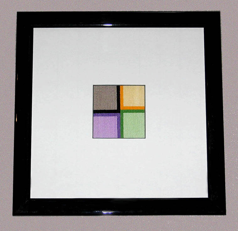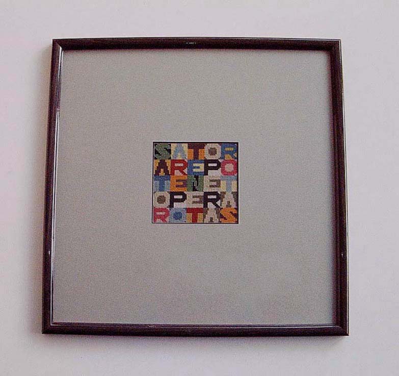 Bild gestickt"Magisches Quadrat"Rahmen Lack grau