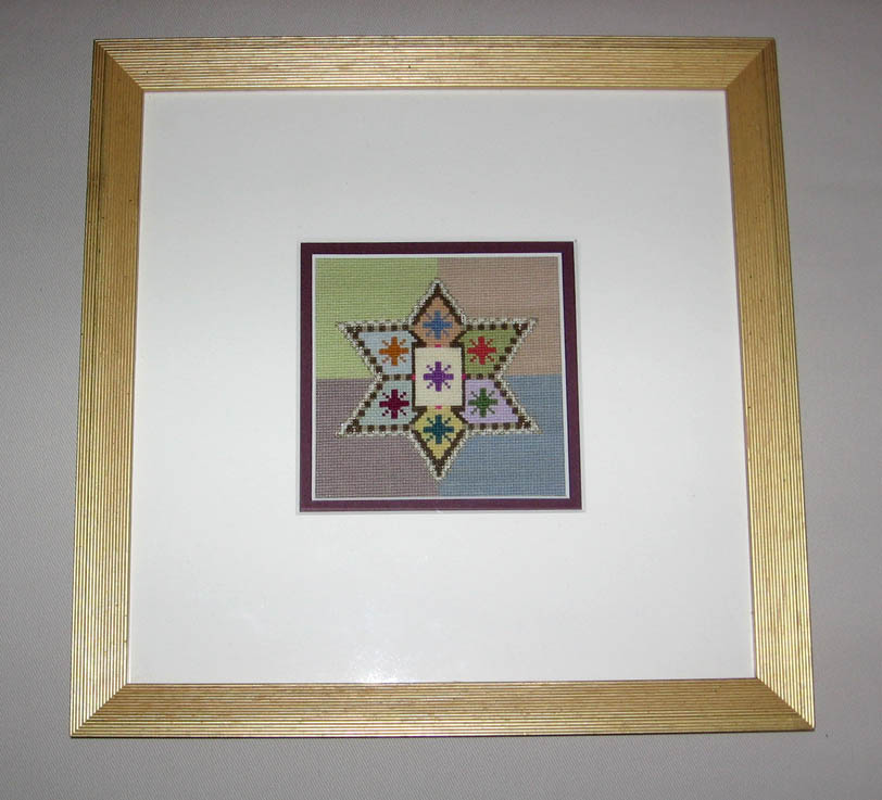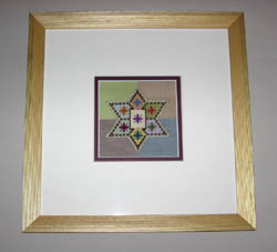 Bild gestickt"Stern"Rahmen Holz goldfaben